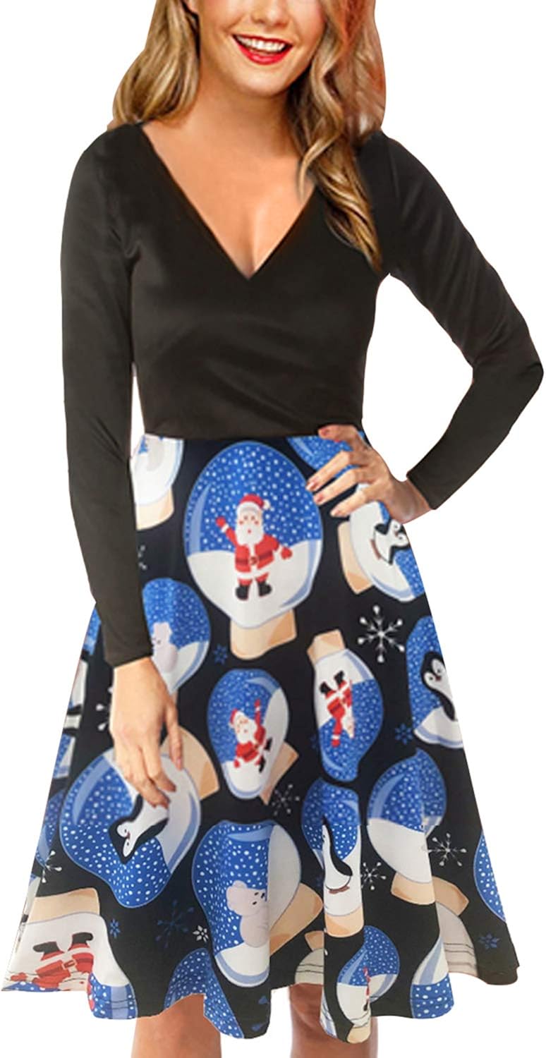 Buoydm Vestito Donna Elegante Natale Mini Abiti Sexy Lunga Maniche Babbo Natale E Alce Abito Da Sera A Vita Alta Vintage Dress Christmas Party Gonna Xmas Cocktail Festa Swing Blu M Amazon It