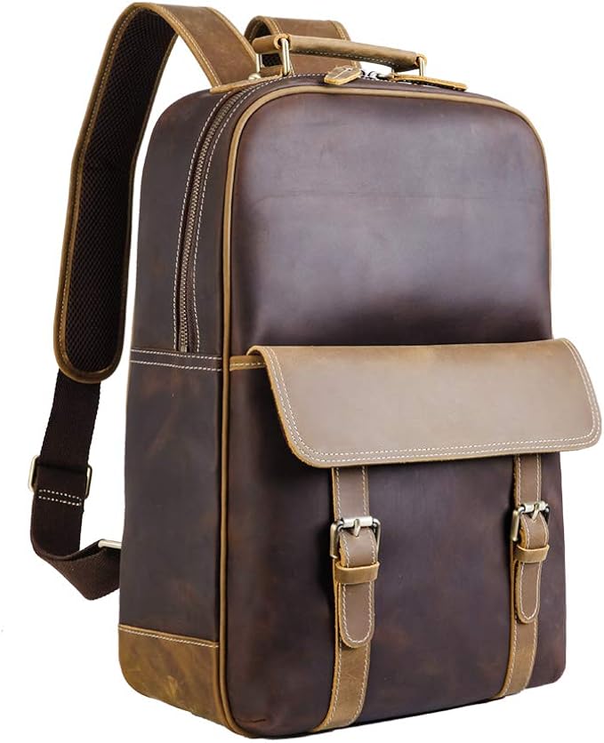 Hwyp Mens Echtes Leder Handgefertigt 17 Zoll Laptop Rucksack Rucksack Multi Taschen Reise Sporttasche Grosse Echtleder Rucksack Fur Laptop Reise Roll Top Rucksack Fur Manner Frauen Black Amazon De Bekleidung