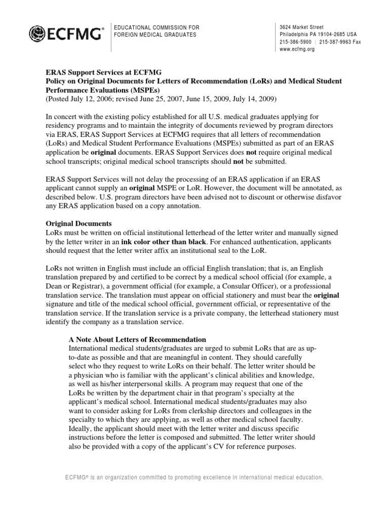 Ecfmg Doc Lor Policy Medical School Residency Medicine